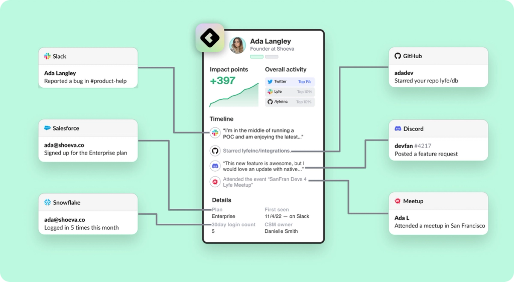 Let’s use an example to walk through some of our newest (and soon-to-be) features—in this hypothetical, let’s say you work at an open source company with an engaged group of contributors. With a community of developers active on GitHub, Slack, Twitter, and Stack Overflow, how do you: Support each individual’s customer journey? Address unanswered threads and posts? Identify which members are ready to engage with your company and convert to a paid customer? If you don’t have visibility into all of these sources and activities for each user, you’re missing out on valuable intent signals.