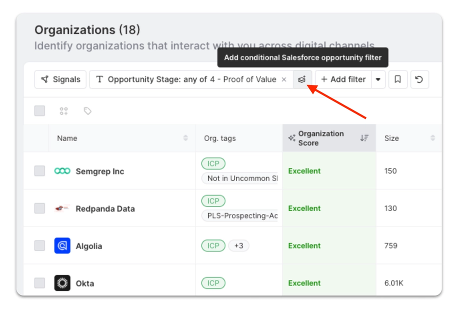 Has team note | Filter by if a teammate has added a note to an Organization. |