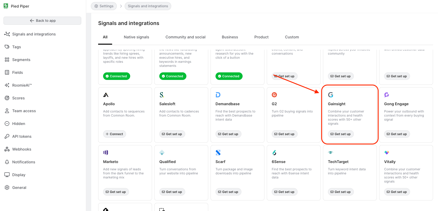 - Use our inbound data field mapping for Salesforce or Hubspot to map the Gainsight data into Common Room.