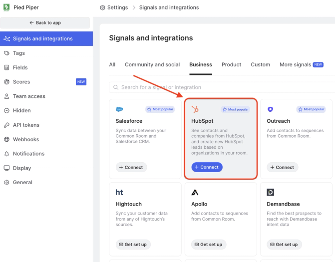 You must be an admin of your HubSpot CRM instance (with the App Marketplace Access permission) in order to install the Common Room app in HubSpot.