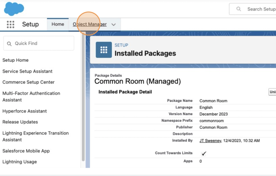 - Click this link to begin the process to install the Salesforce Managed Package.