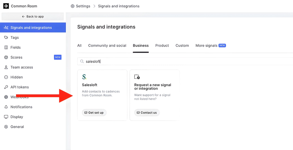 - Open Settings, navigate to Salesloft and click Get set up from the list of signals.