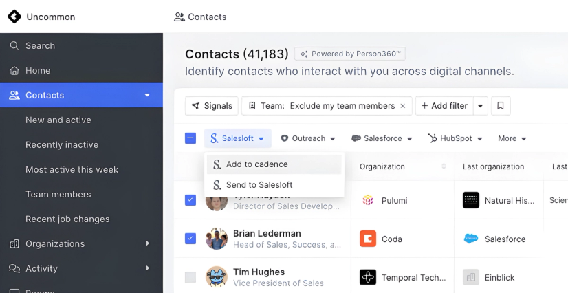 Salesloft is a sales engagement platform that helps sales teams automate and streamline their processes, from emailing, cold calling, social engagement, and more. By integrating Salesloft with Common Room you can add Common Room Contacts—and any relevant activity to provide more context—to Salesloft Cadences.
