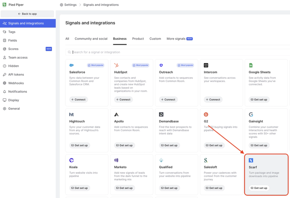 Combine account-level intent data about your open-source software from Scarf with first-party person data from Common Room Person360™ to prioritize your account-based approach and identify economic buyers, product users, active Contacts, and other prospects in the market.