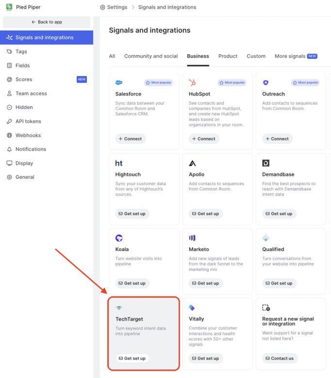 - Use our inbound data field mapping for Salesforce or Hubspot to map the Techtarget data into Common Room