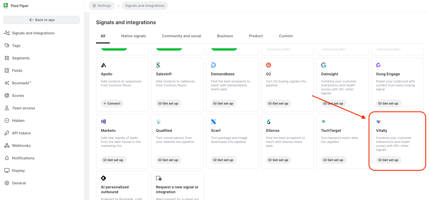 - Use our inbound data field mapping for Salesforce or Hubspot to map the Vitally data into Common Room.