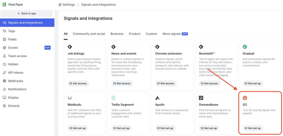 - Use our inbound data field mapping for Salesforce or Hubspot to map the G2 data into Common Room.