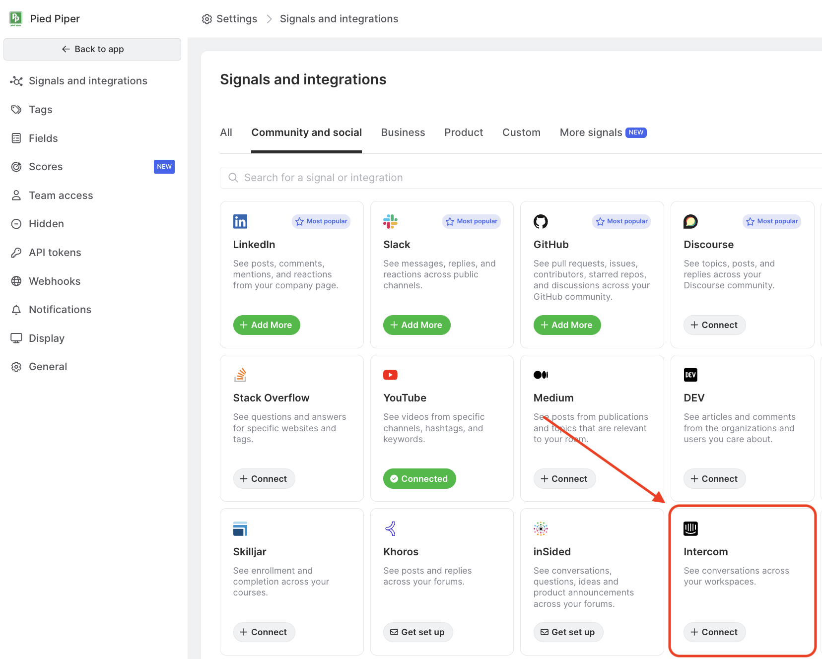 - Open Settings and select Intercom from the list of signals.