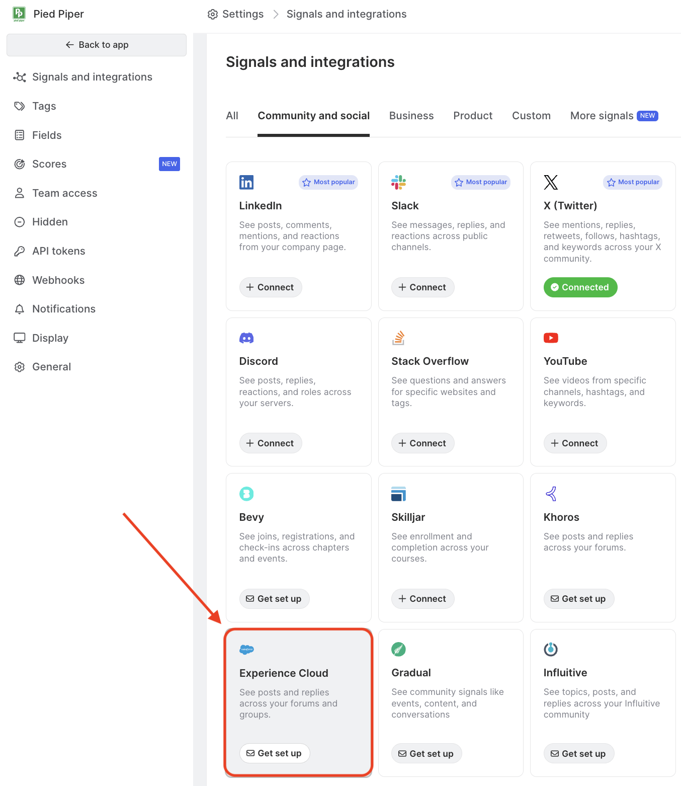 You must be an admin of your Salesforce Experience Cloud instance, with "View All" permission for FeedItem and TopicAssignment types, in order to set up the integration.