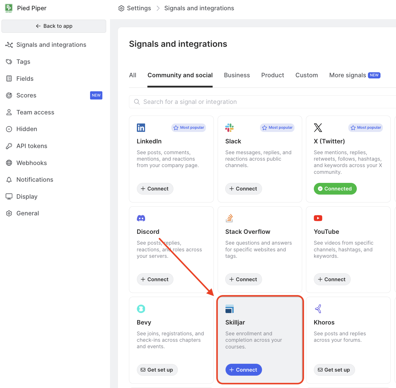 Navigate to your Common Room settings page and select Skilljar, then follow the in-app instructions.
