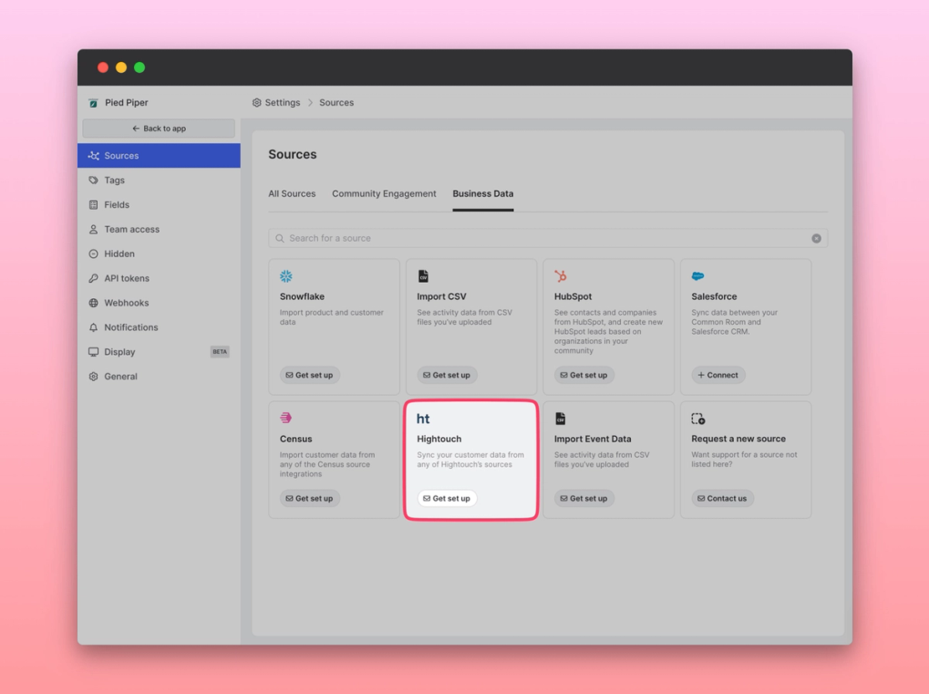 Sync new contacts and organizations into Common Room from any of Hightouch’s supported sources.
