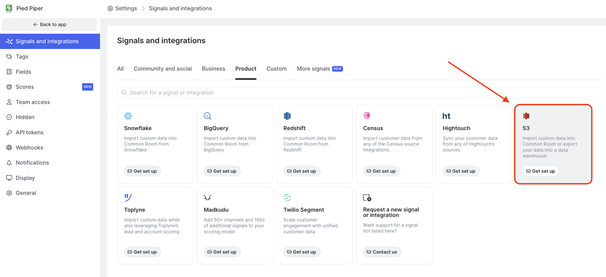 Our S3 integration is included on the Enterprise plan and is available on the Team plan as an add-on. Please work with your Common Room contact for more information.