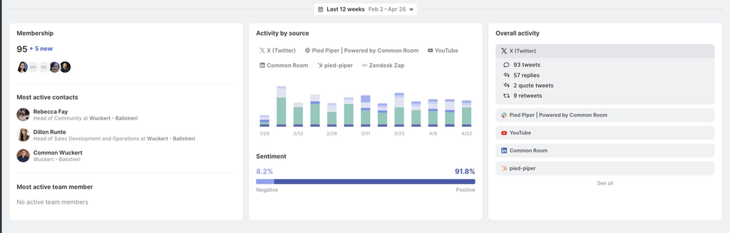 Most active Contact | The Contact that is the most active person in your community. This can help you identify the organization’s champion and where your advocates are. |