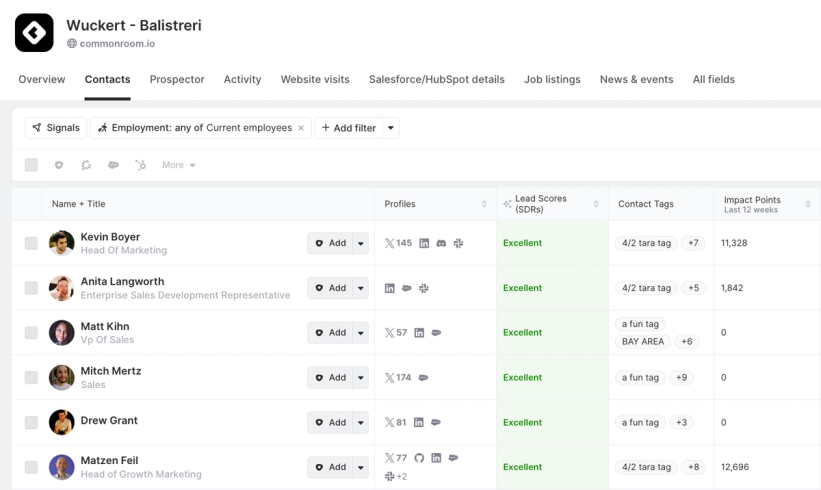 - Economic buyers not in Common Room: Common Room uses AI to find potential decision makers in this organization that do not have activity in your sources.