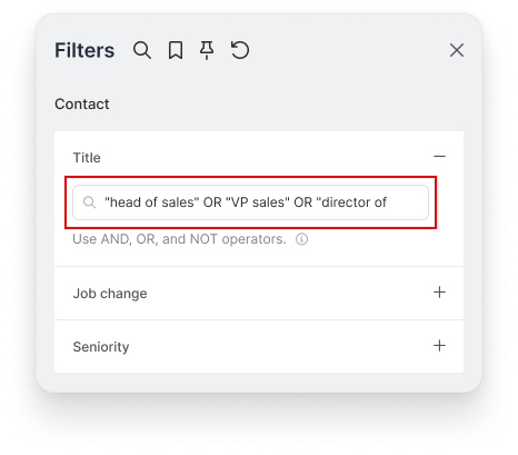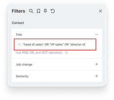Many filter fields support boolean search operators, allowing you to create precise, complex queries: