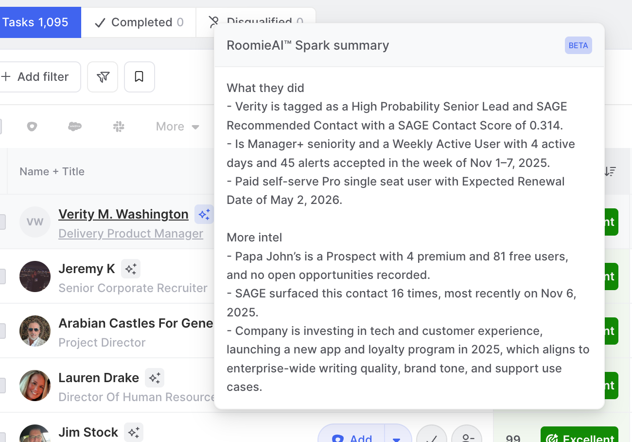 You’re all set! Once notifications are active, reps will start receiving real-time RoomieAI Spark alerts with enriched contact and account insights.