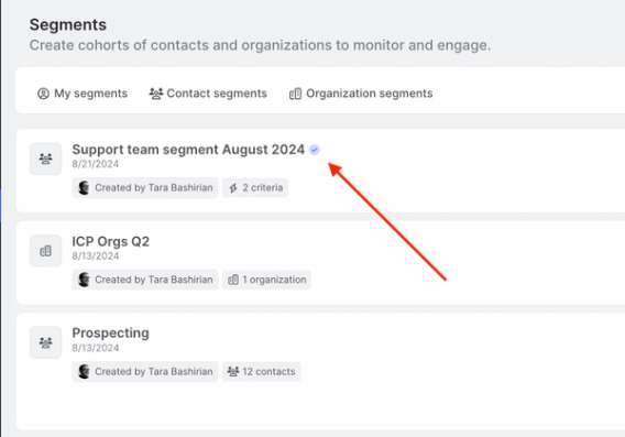 Your team will be able to identify a segment is a Team segment, as it will have a blue checkmark to the right of the segment's name, as shown below: