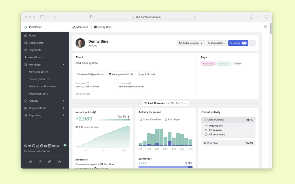We can click into member and get an overview of their attributes and activity—more on what’s included on member profiles here.