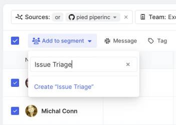 We’ll then go ahead and select all of these members and add them to our newly created triage “Issue Triage” segment. From here, we can jump into the Segment view in Common Room for our next step.
