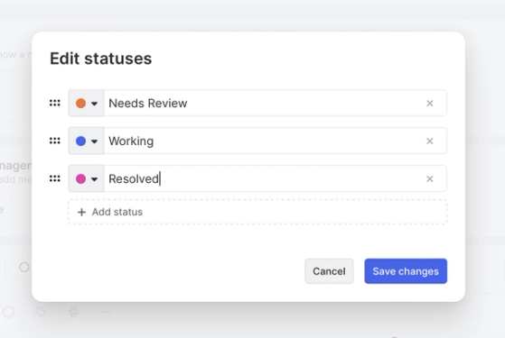 In this step, we’ll create a few statuses for group members to triage issues accordingly. We’ll click on + Add status and create three—Needs Review, Working, and Resolved.