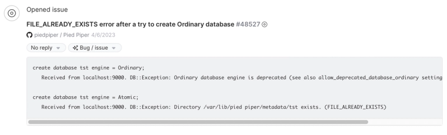 From here, we can scroll down and find the submitted issue. And we can click to view it on GitHub.