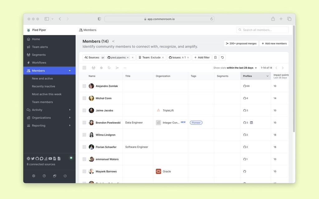 Once approved and authenticated, you’ll see activity data from GitHub in your Common Room instance after a few minutes.