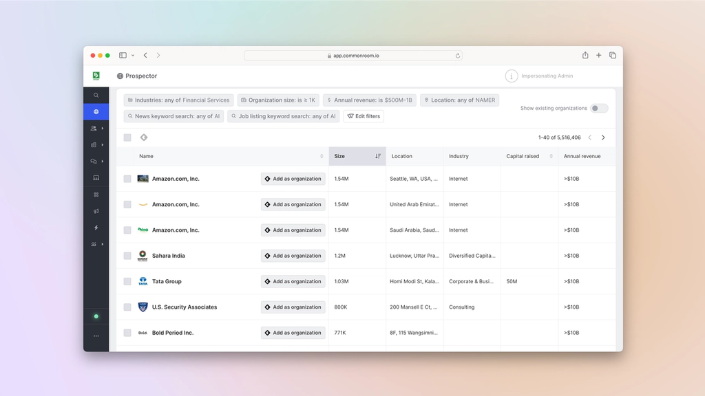 This allows us to surface companies and prospects we may not know about based on our custom filtering criteria.