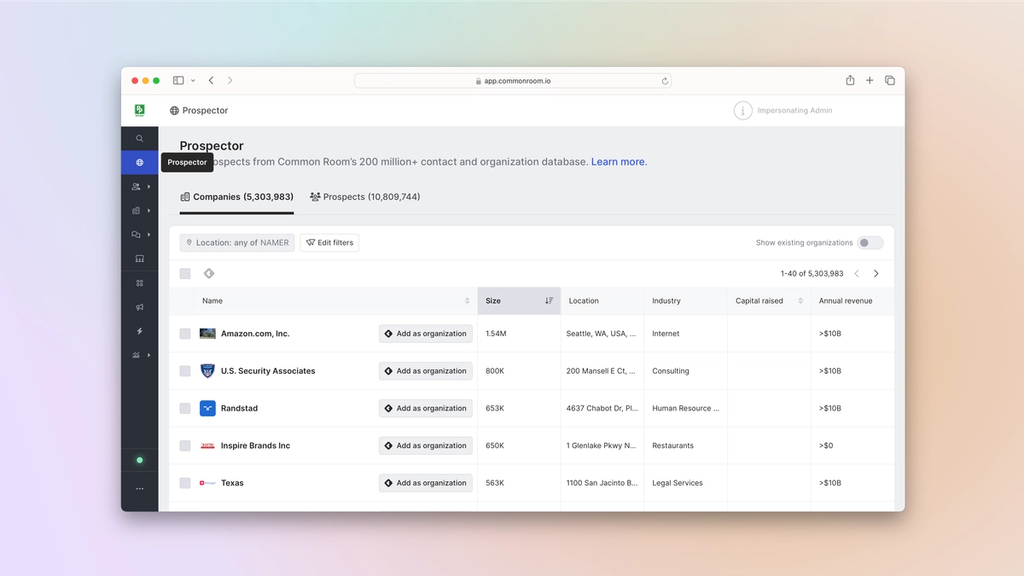 Prospector pulls from a proprietary, constantly refreshed database of more than 200 million B2B orgs and contacts.