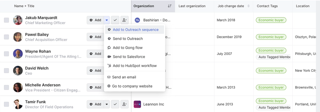 For example, we can sync their records with our CRM, add them to Salesforce campaigns or HubSpot workflows, or push them to different sequences in our sales execution platform.