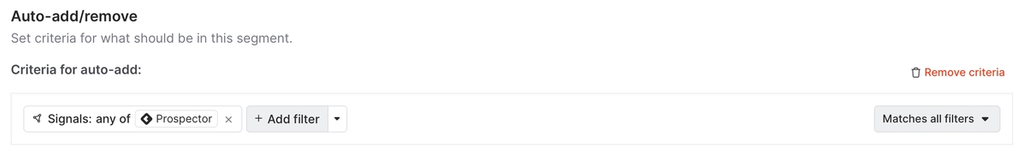 But in this case, we want to add our new prospects to a dedicated segment so we can take action on them at scale.