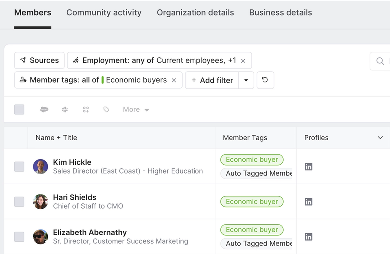 Even better, we can drill down into these individuals to see which ones are economic buyers.