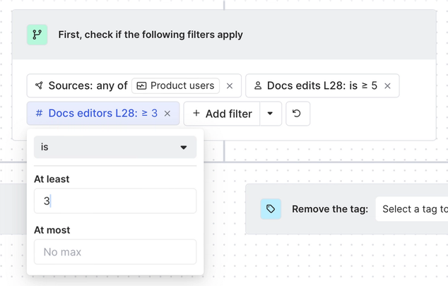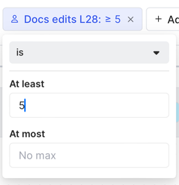 We’ll add filters for users who were seen in the product in the past 28 days and who have five or more document edits.