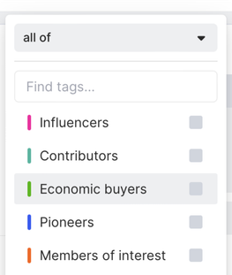 Just click Add filter, choose Contact tags, and select Economic buyers.