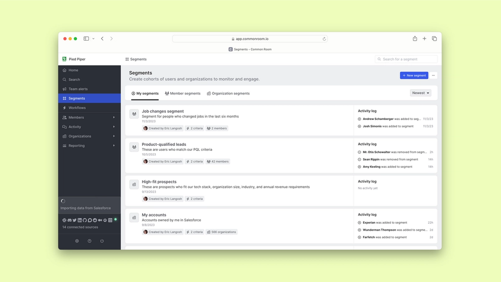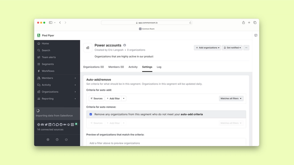We can also make sure we’re the first to know whenever a new organization gets added to our segment.