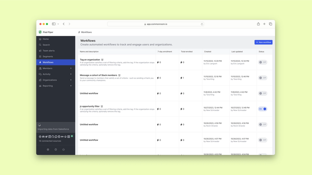 Once we connect and authenticate our account, data from LinkedIn will start flowing into Common Room.