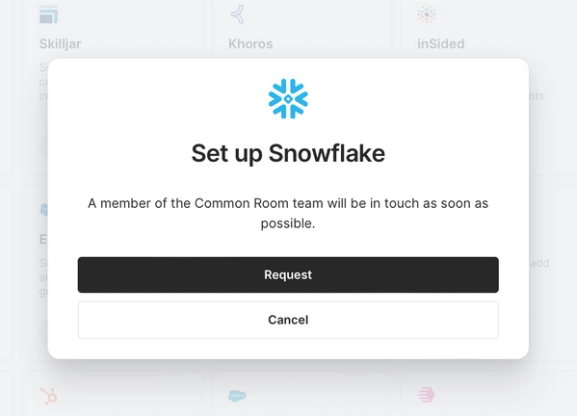 We want to hone in on organizations that are active in our product, so our first step is connecting our product usage data to Common Room. We’ll use Snowflake in this example ❄️