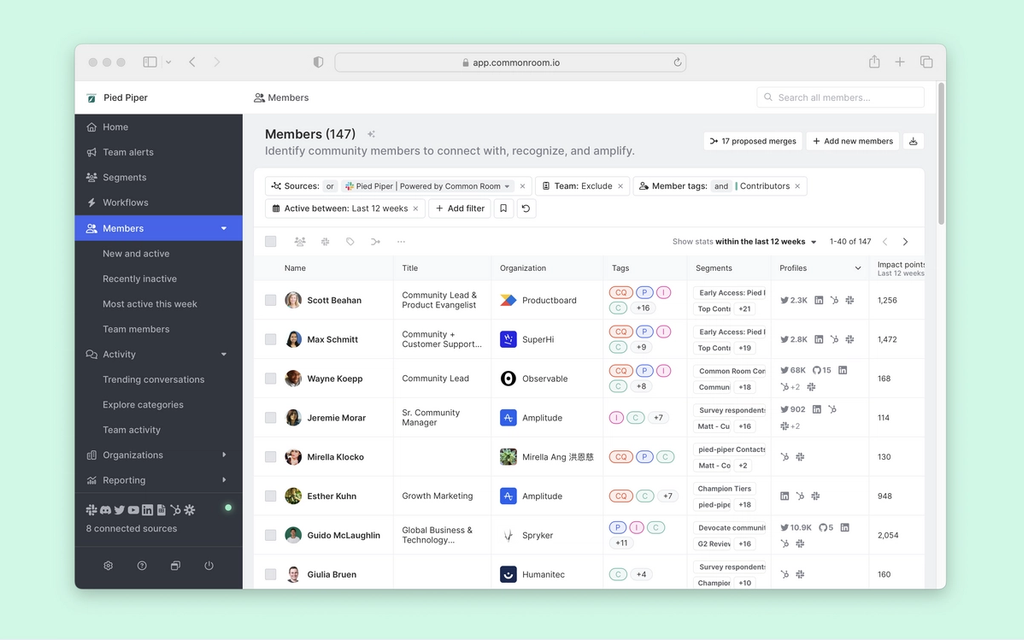 For this tutorial, we’ll use the actual criteria for identifying champions in our own Uncommon Community — top community contributors (specifically in Slack) + active product user + impact points > 100.