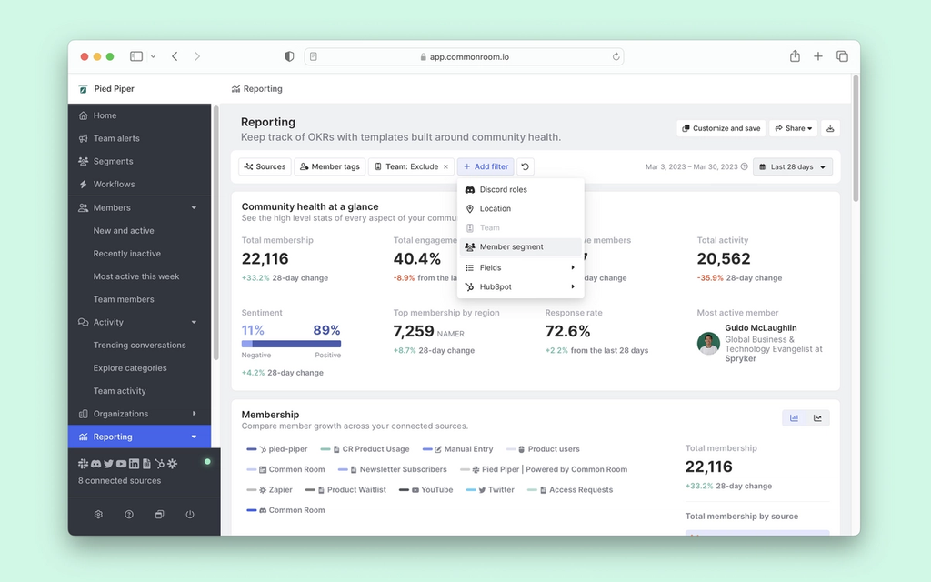 And we can also report on segment performance to track champions membership, activity, and engagement over time.
