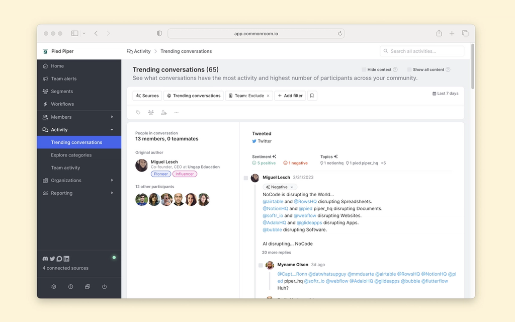 After connecting our other relevant sources (Discourse, LinkedIn, Twitter, etc.), Common Room will import data into your workspace following the docs outlined here.