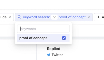 We’ll then use Keyword search again to add the “proof of concept” and “pricing” keywords as the Auto-add criteria. Be sure to uncheck the auto-remove checkbox that’s checked blue by default. In this case, we don’t suspect our core criteria to change over time, so there’s no use in using the auto-remove capabilities.