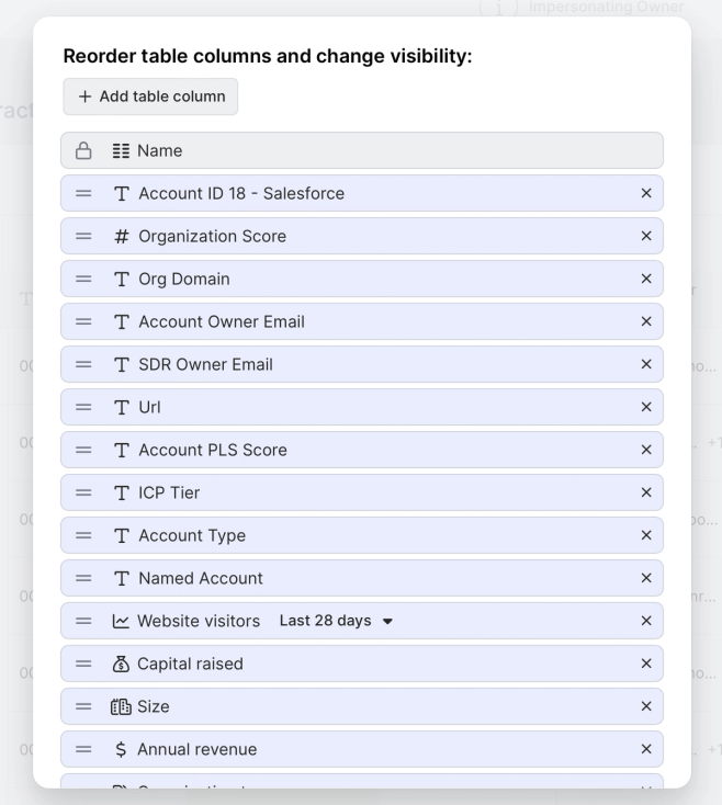 Once we’ve customized how accounts are scored using this and other fit and behavior criteria, we can add account scores as yet another column in our org-level view.