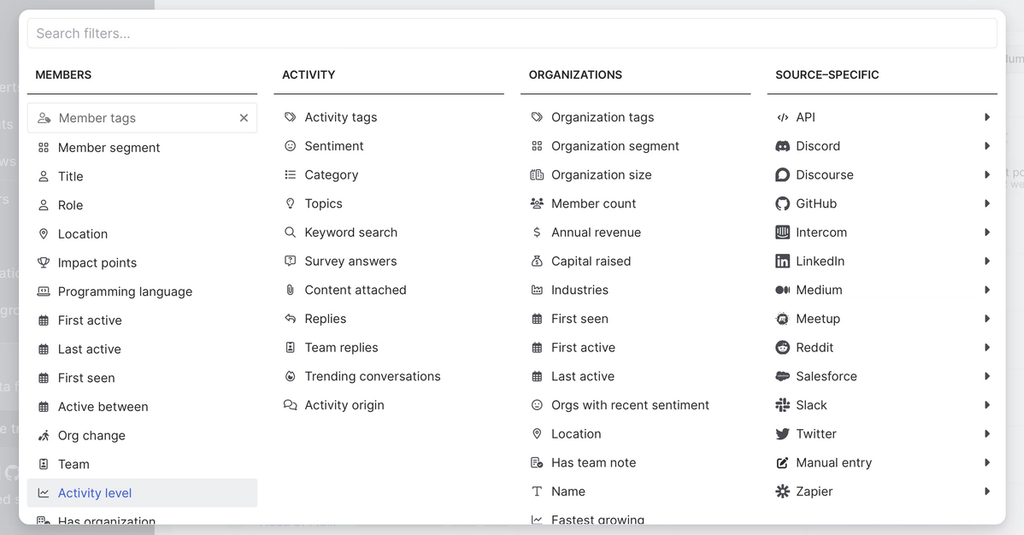 Then we’d click Add filter and choose Activity level.