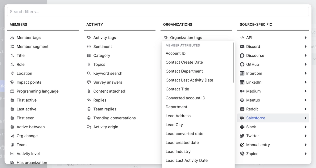 Click Add filter and choose Salesforce from the source-specific section.