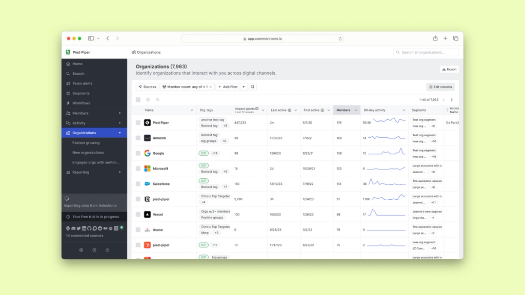 Okay, now that we’ve completed our inbound data setup, let’s see what Common Room can tell us.