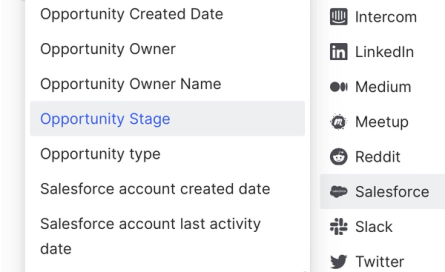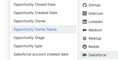 Which fields you map to Common Room will differ depending on how your Salesforce instance is set up, but in this case, let’s say we’re focused on the Opportunity Stage and Opportunity Owner Name fields.