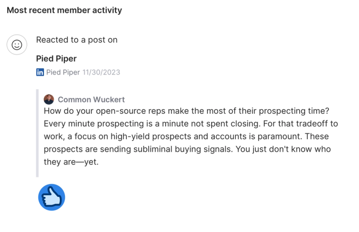 We can easily click into each person to learn more about them and their recent activities, such as questions, comments, and reactions across channels.