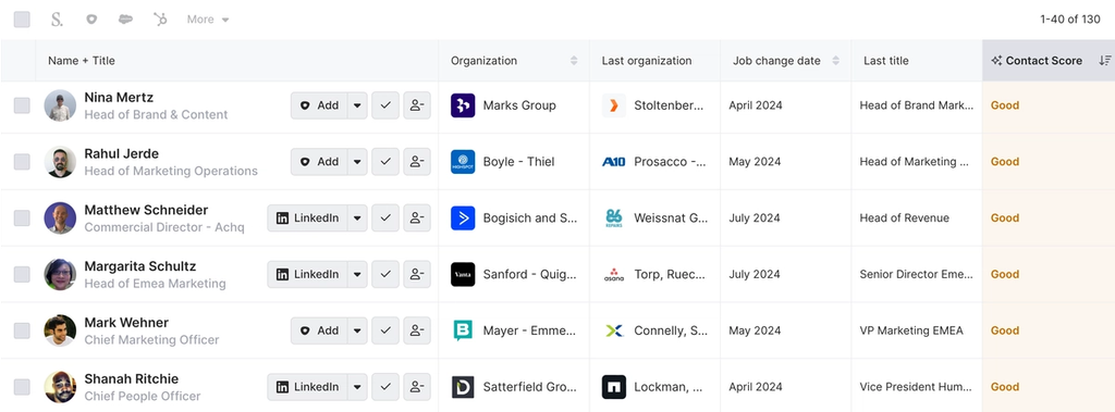 Every time an SDR opens this segment, they’ll be dropped into a view of economic buyers who switched jobs in the last six months and now work at ICP-match organizations.