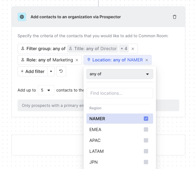 Our ideal buyers are marketing leaders at the director level and above who operate in North America, so we’ll configure Prospector accordingly.