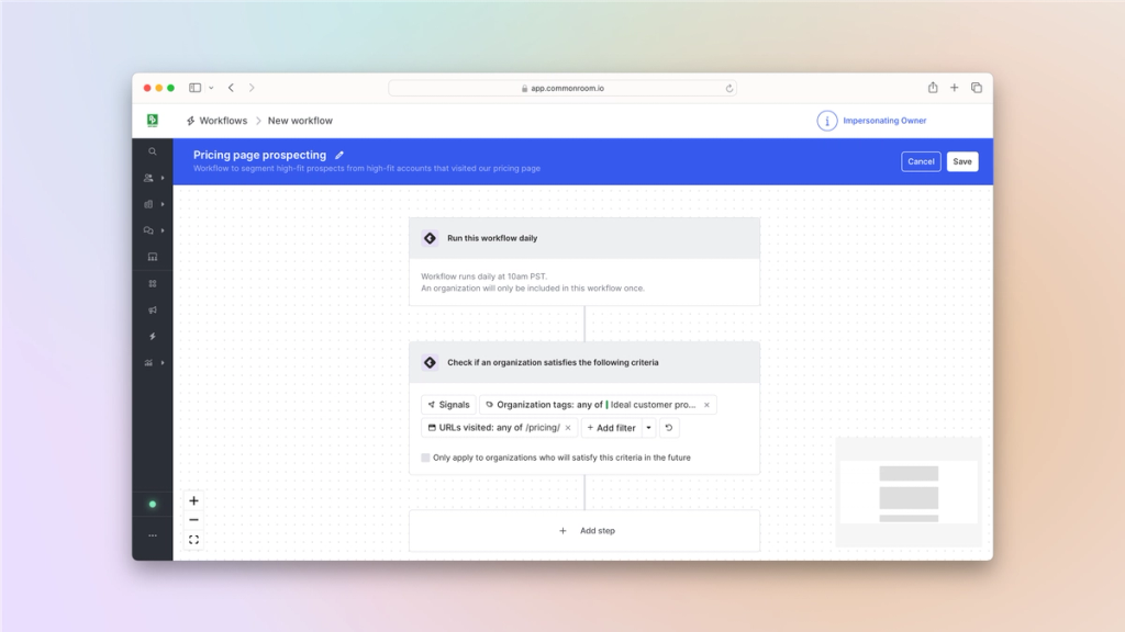 Common RoomThis is how we’ll automatically uncover and action on new prospects. Request a demo to follow along.