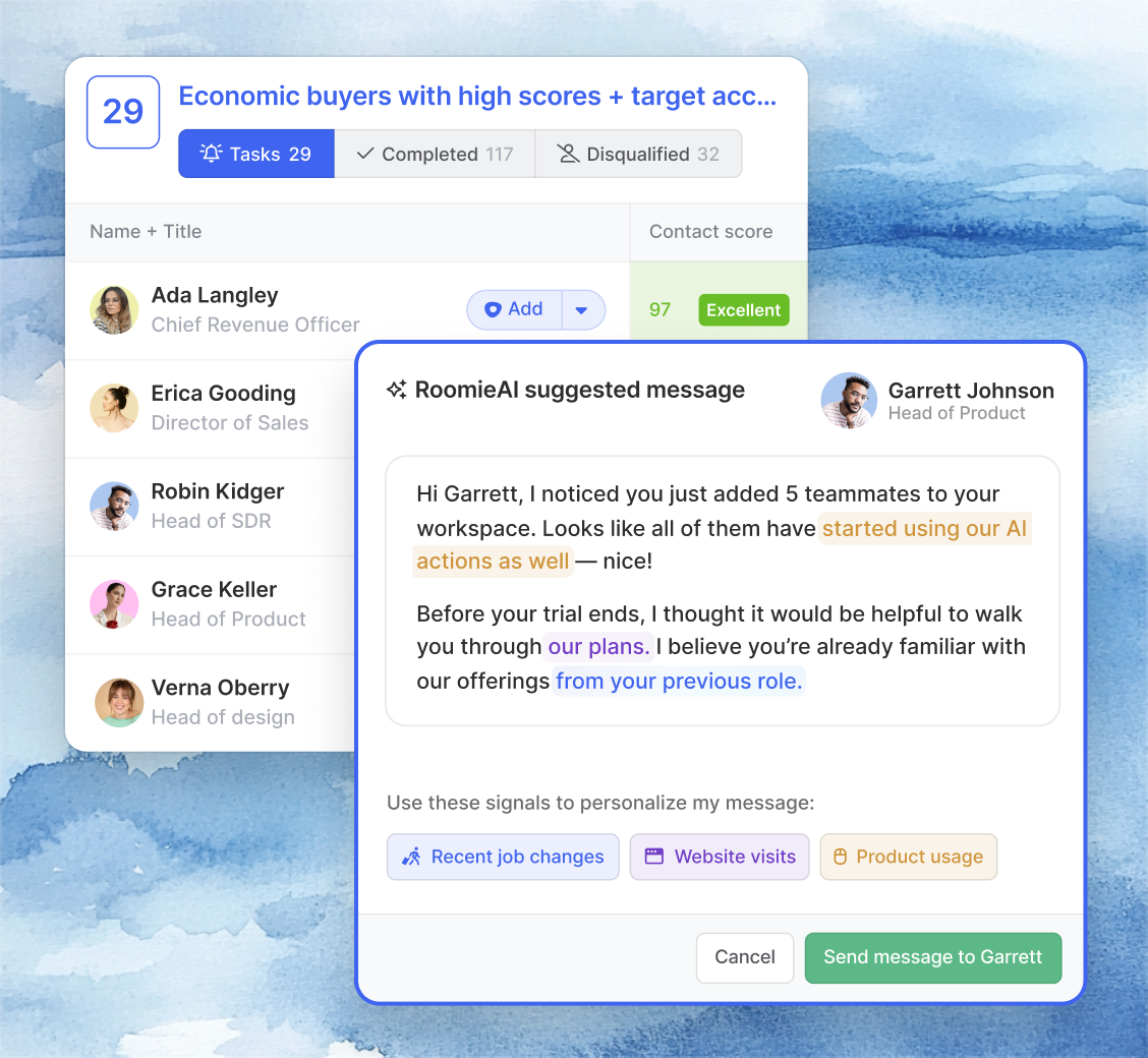 Give your reps a single workspace that replaces frustrating CRM interfaces. Prioritize opportunities through intelligent scoring and ready-to-execute plays. RoomieAI automates research and personalized outreach, eliminating system-hopping while boosting output.